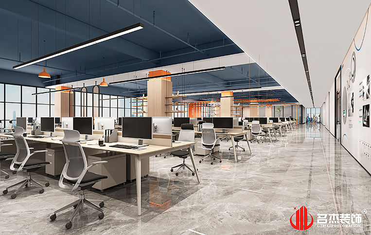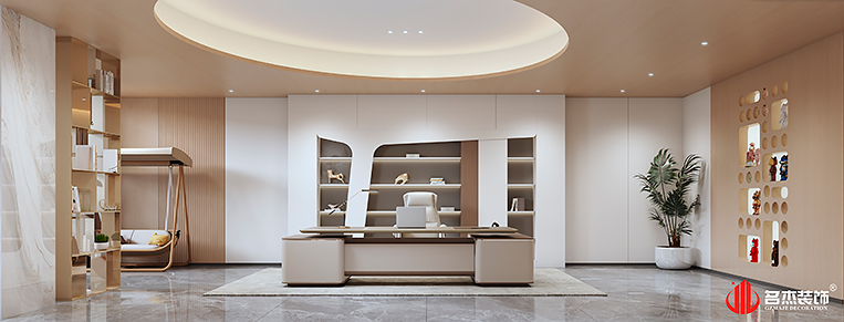 這次是一家以從事科技推廣和應用服務業為主的企業,是屬于科技行業,設計團隊對科技行業是非常了解的,結合了客戶的需求,以及從現場的實際情況,設計團隊采用時尚簡約的風格來作為這個新辦公裝修設計空間的主打風格。利用傳統的天圓地方的理念,結合該企業的VI色系,塑造出一個獨特且有趣的辦公室裝修設計空間。