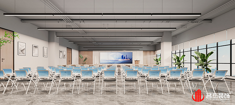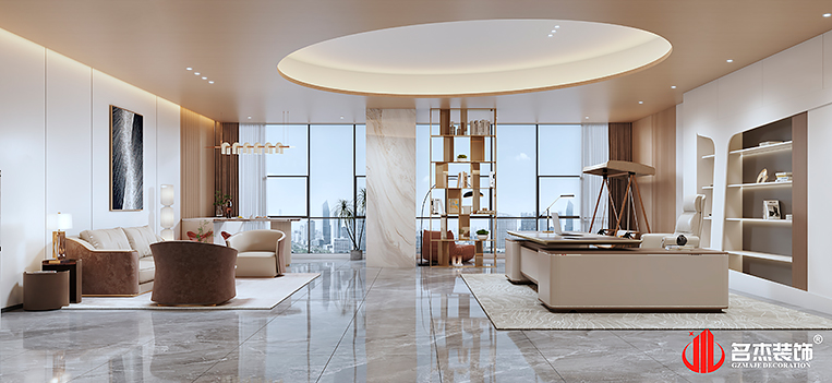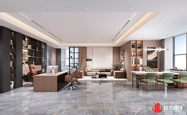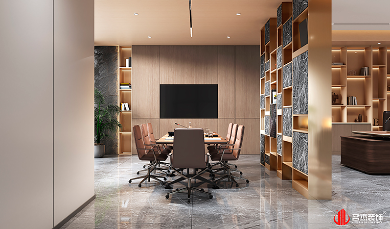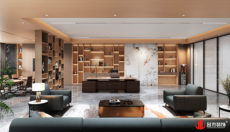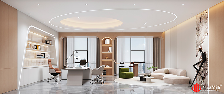 辦公空間的前臺結合天圓地方的設計理念,弧形的背景墻,加上層層堆疊的天花造型,很好的呈現出一個獨特且有品位的集團前臺。而在辦公區域則是選擇使用企業的LOGO色融入到整體設計中,讓其企業氛圍更加濃郁。在高管的辦公室則是采用較為沉穩的設計風格,選擇有質感的材料來定制這些高管辦公室裝修設計空間。#廣州辦公室裝修#