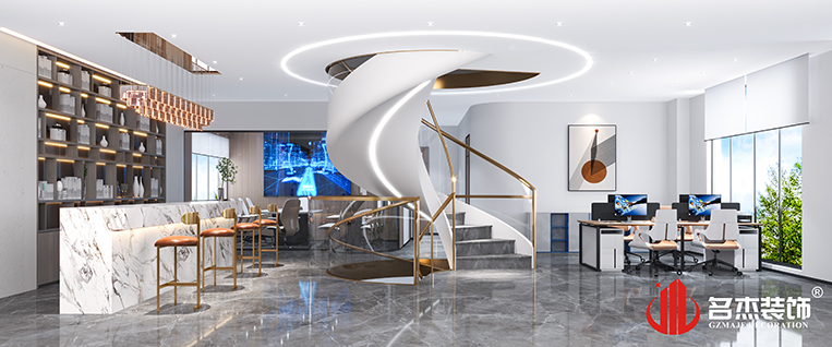 考慮到企業(yè)是以銷售為主,簡約的風(fēng)格是可以讓辦公室裝修設(shè)計(jì)空間看起來更加干練,同時(shí)沒有過多的裝飾,讓空間變得更加有效率。在展廳區(qū)域采用科技感強(qiáng)烈的元素,讓空間充滿未來感。而在休閑區(qū)則是使用簡約而不簡單的元素,加上燈帶的烘托下,舒適休閑的感覺油然而生,可以讓員工緊張的情緒得到放松。