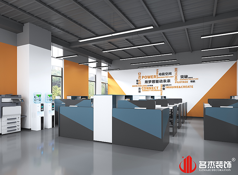 整體辦公室裝修設(shè)計風(fēng)格采用現(xiàn)代工業(yè)風(fēng)格,同時也在空間中加入logo色——橙色作為點綴色,讓空間也充滿活力,同時還能夠讓員工感受到活力滿滿的。不同的造型燈帶來的不同的感官享受,能夠讓空間變得更加有趣的同時,也是能夠讓空間變得更加有設(shè)計感。