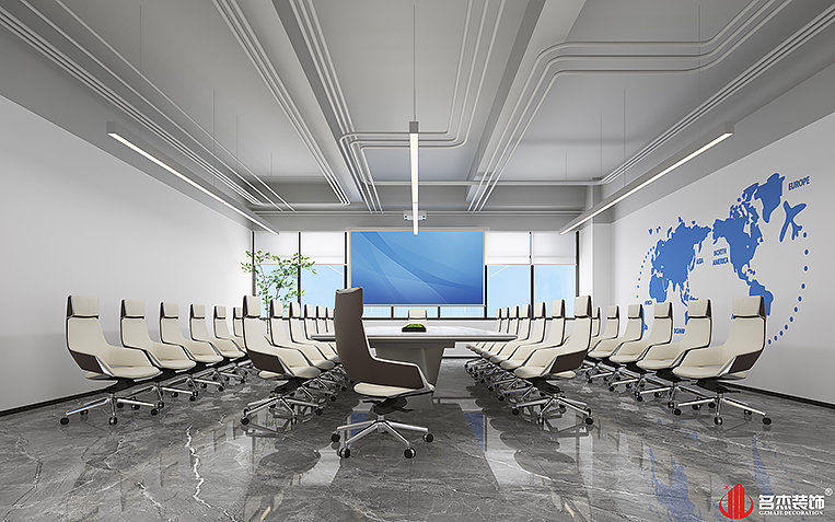 這次接到的是一家個(gè)人健身運(yùn)動(dòng)設(shè)備、通用電氣硬件和田徑運(yùn)動(dòng)設(shè)備為主的銷售型企業(yè),設(shè)計(jì)團(tuán)隊(duì)按照過往的經(jīng)驗(yàn),結(jié)合客戶的實(shí)際需求,配合簡(jiǎn)約的線條燈具和天花造型,打造出一個(gè)以時(shí)尚簡(jiǎn)約風(fēng)格為主的科技銷售型辦公裝修設(shè)計(jì)空間。