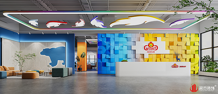 整體空間氛圍是以時尚簡約的風格,加入對比度強烈的色彩作為空間的點綴之筆,讓整個辦公室裝修設計空間有了更好的層次感。同時因為這些色彩的加入,也讓這個辦公室裝修設計空間多了一份童趣的屬性,讓人感受到冠誠玩具廠辦公空間想要成為該行業的辦公裝修設計空間的標桿。#廣州辦公室裝修設計#