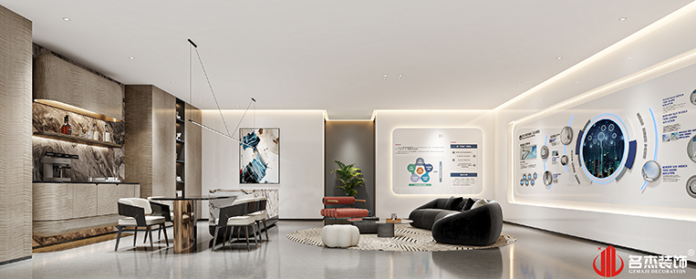 設計團隊采用時尚簡約的風格來作為設計的主導風格,在部分區域的設計上,采用一些時尚科技的元素作為點綴,讓空間充滿不一樣的氛圍感。同時大面積使用碳晶板,空間的整體性會更加強,而且還能讓設計層次感更上一層樓。#廣州辦公室裝修設計#