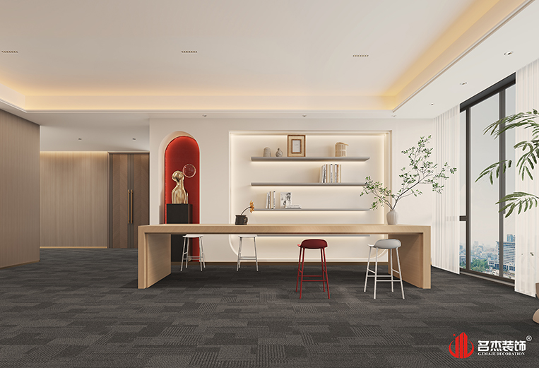 時尚簡約風格是這次設計的主打風格,設計團隊在這個時尚簡約的設計基礎上,大量加入跳色的設計,讓空間具有設計層次感的同時,還能讓來訪的客戶以及員工感受到企業特色設計風格。以搭積木的方式來講辦公區和經理室區域進行分隔,這種非常具有創意的設計也是這次設計的亮點所在。#廣州辦公室裝修設計公司#
