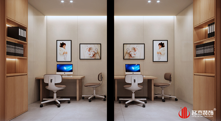 設(shè)計(jì)團(tuán)隊(duì)在前臺(tái)區(qū)域使用比以往更多的圓弧形元素來作為辦公室裝修設(shè)計(jì)空間的主打設(shè)計(jì)要素,來避免孩子們碰傷的可能性,這樣的做法也是能夠讓空間的設(shè)計(jì)感更加強(qiáng)烈。家具的選擇上面也是選擇較為百搭的白色和原木色作為主要方向,呼應(yīng)空間的同時(shí),還能夠增加空間的設(shè)計(jì)層次感。而其他區(qū)域則是選擇較為常規(guī)的做法,通過對(duì)材質(zhì)的選擇,打造出不同以往的設(shè)計(jì)風(fēng)格。整體空間給人的感覺就是舒適,簡約而不簡單,同時(shí)也能夠符合兒童攝影的定位。