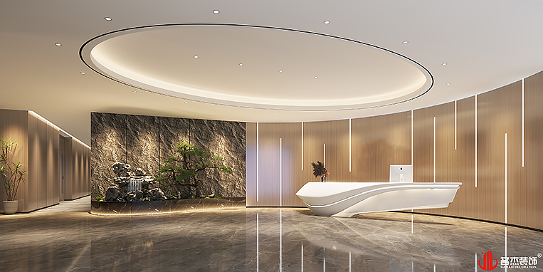 空間中的前臺接待區域使用造景的設計手法,來突出風生水起的設計重點,配合前臺背景墻使用的碳晶板,以及燈條作為點綴設計元素,搭配出不一樣的裝修設計效果。對于棋牌休閑空間來說,燈光是非常重要的元素之一,因此設計團隊也著重在這方面上的設計,通過使用造型不同的燈具,為空間增加了不少的時尚潮流感。#廣州公裝裝修公司#