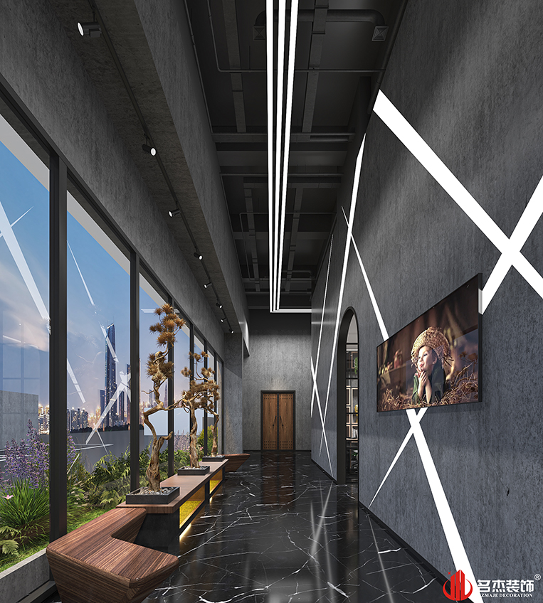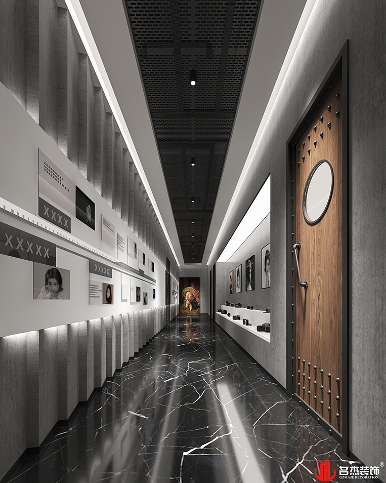 設計團隊采用時尚簡約混搭工業風的風格來作為這次的主導風格,在前廳區域,利用線性的燈具,起到一個引導的作用,讓客戶能夠更加清晰每個區域。同時背景墻使用不規則的造型,也更能突出空間的藝術感。在不同區域加入不同的造型來增加空間的層次感,讓空間簡約而不簡單。#攝影館裝修設計#